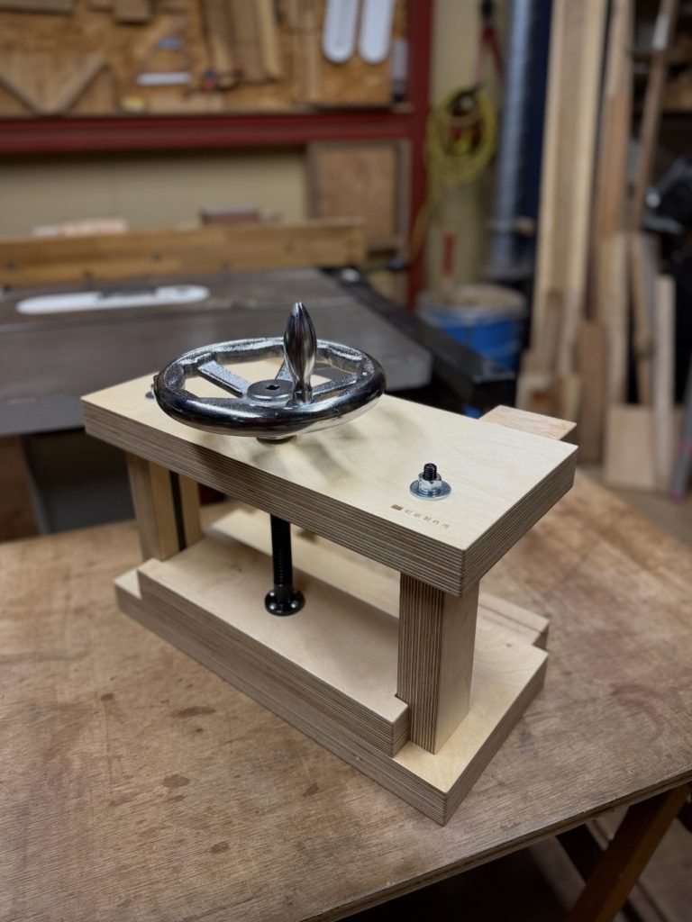 重量のある朝顔ハンドルを使用しているため、プレス板の昇降も遠心力が働き思いの外楽に動かせます。